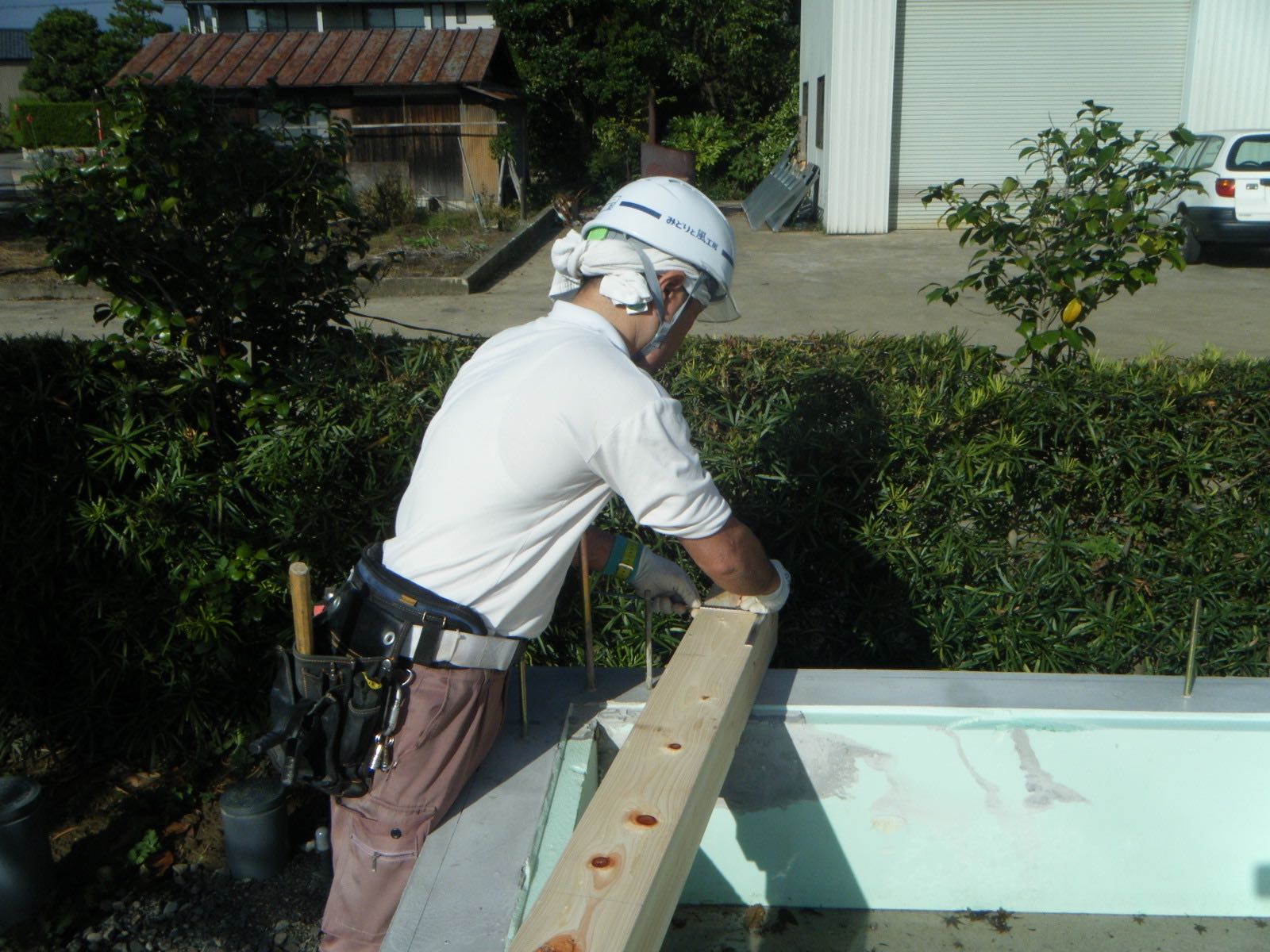 本日、坂井市丸岡町のS様邸新築工事の土台伏せを行いました。