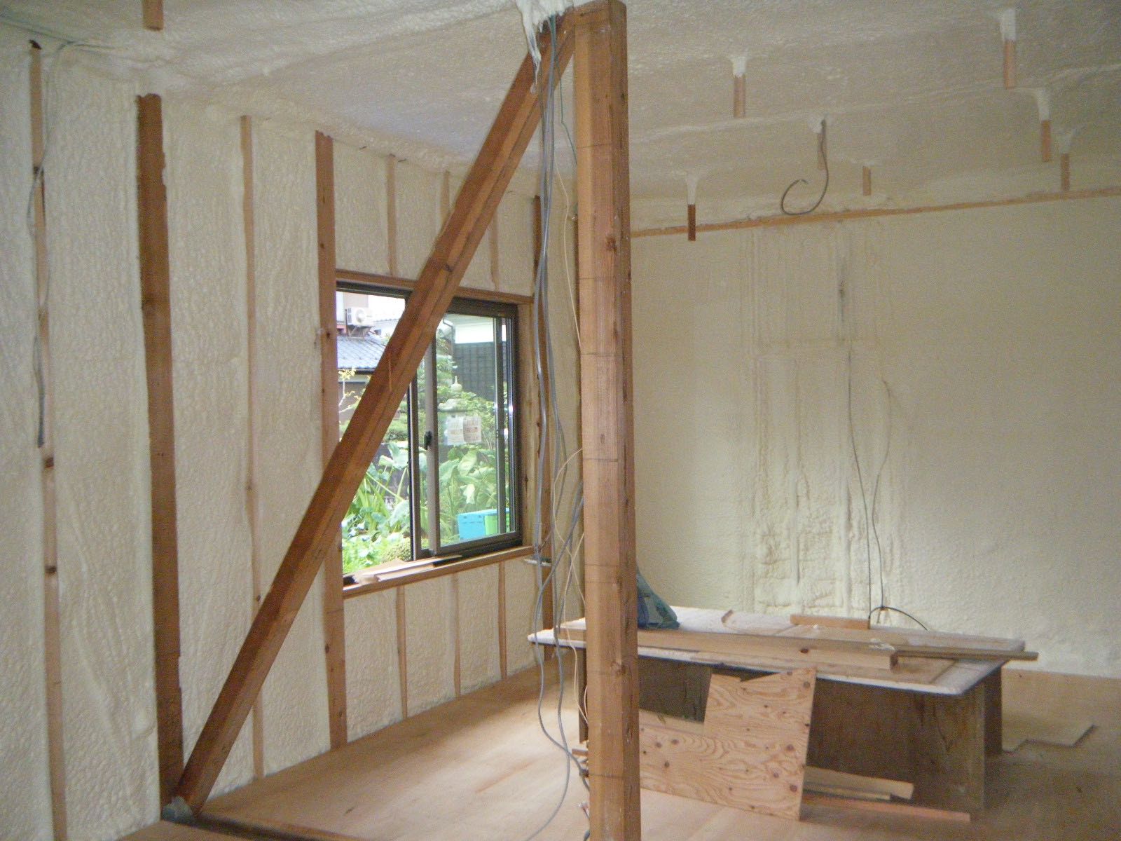 福井市下細江で工事中のY様邸改装工事のウレタン吹き付けが完了したので、確認に行ってきました。