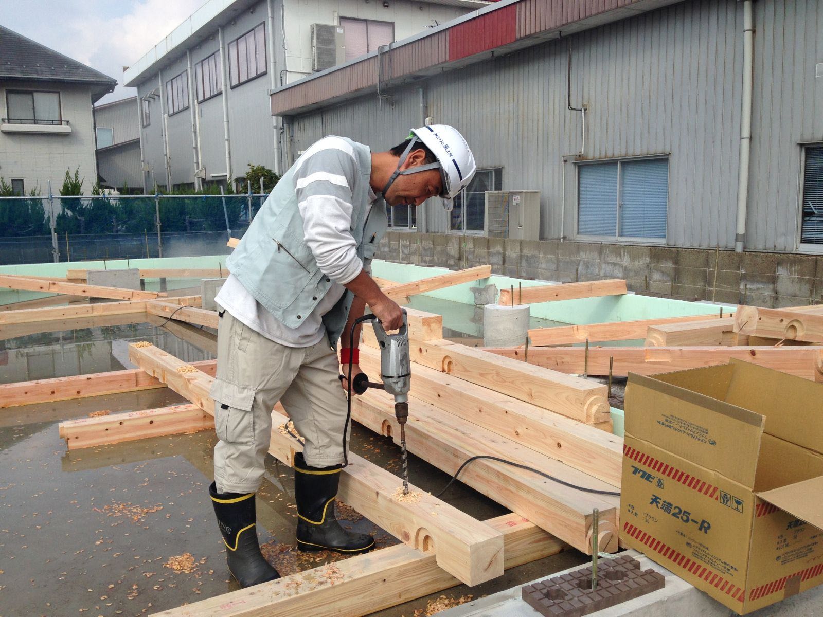 今日は、大工さん2人で作業し、土台伏せと屋根材の加工まで1日でおこないました。