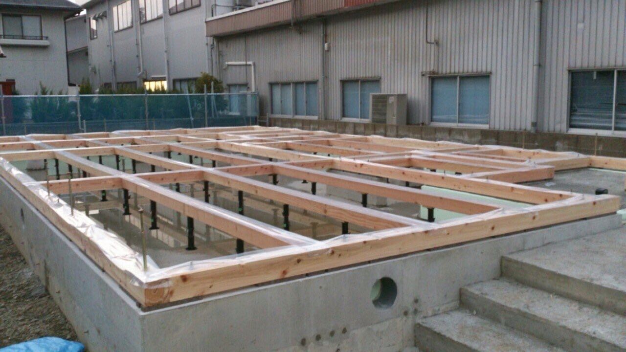 鯖江市杉本町で工事中のH様邸新築工事の現場ですが、本日、土台伏せが完了しました。