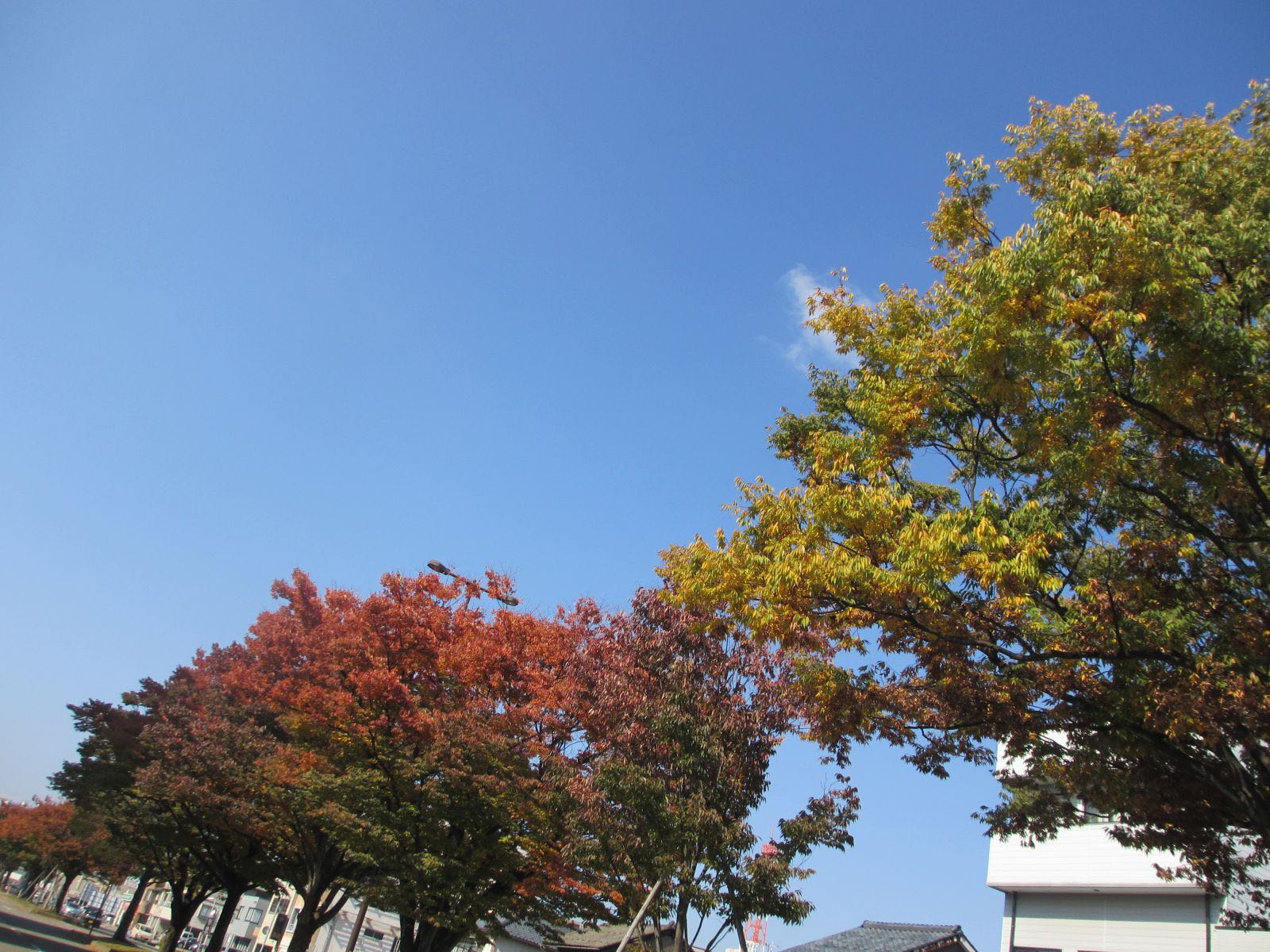 青い空に、赤と黄色が映えてキレイです