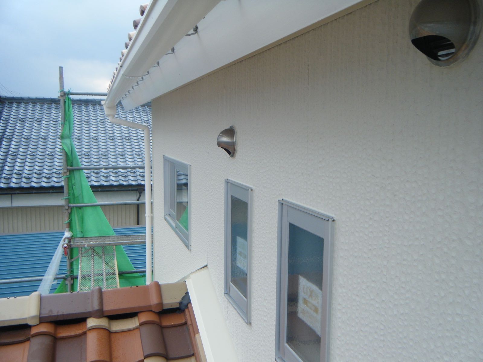 外壁サイディングのキズ・外部フードの取り付け状況・サッシ廻り等コーキング等を確認しましたが、問題なく施工されており、きれいに仕上がっていました。