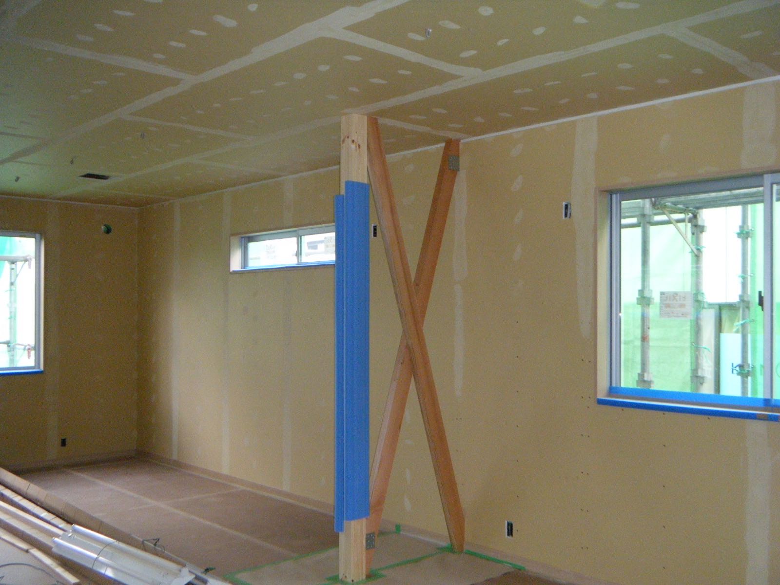 内部では、クロス貼り前のパテ処理中でした。
