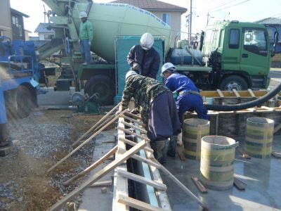 午前中、アンカーボルトのセットを行い、午後よりコンクリートの打設を行いました。