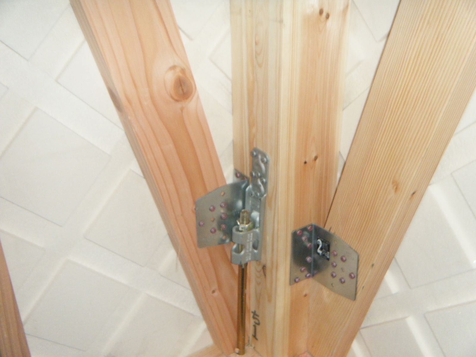 金物によってビスの長さや本数も異なるので、大工さんの取り付け作業が完了したら、図面通りの場所に適正に取付けられているかの確認をします。