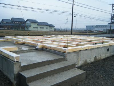 鯖江市大倉町のS様邸新築工事ですが、昨日土台伏せを行いました。