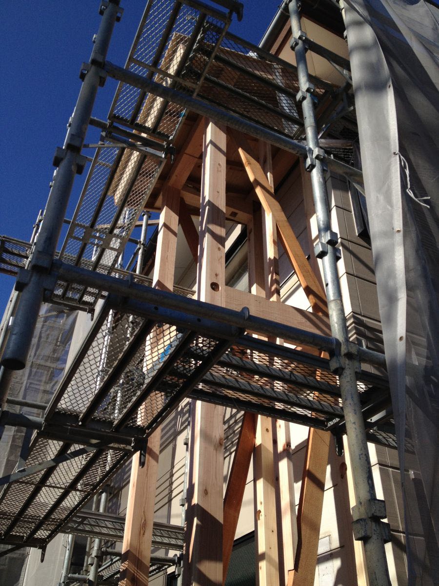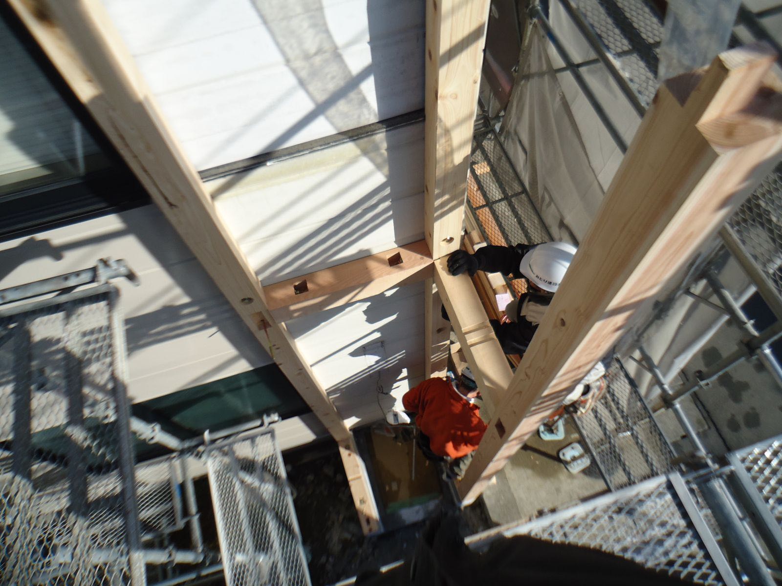 今日は、福井市Y様邸の耐震補強の建て方に辻チーフと行きました!