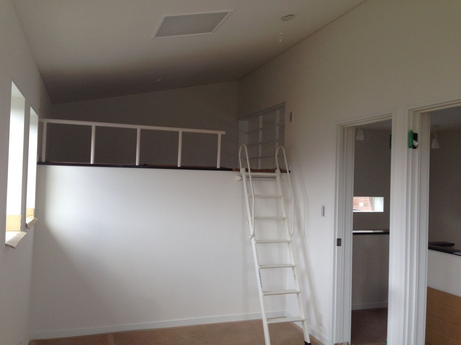 2階洋室クロス貼り完了状況(ロフトからはスタディーコナーを覗ける窓がついてます)